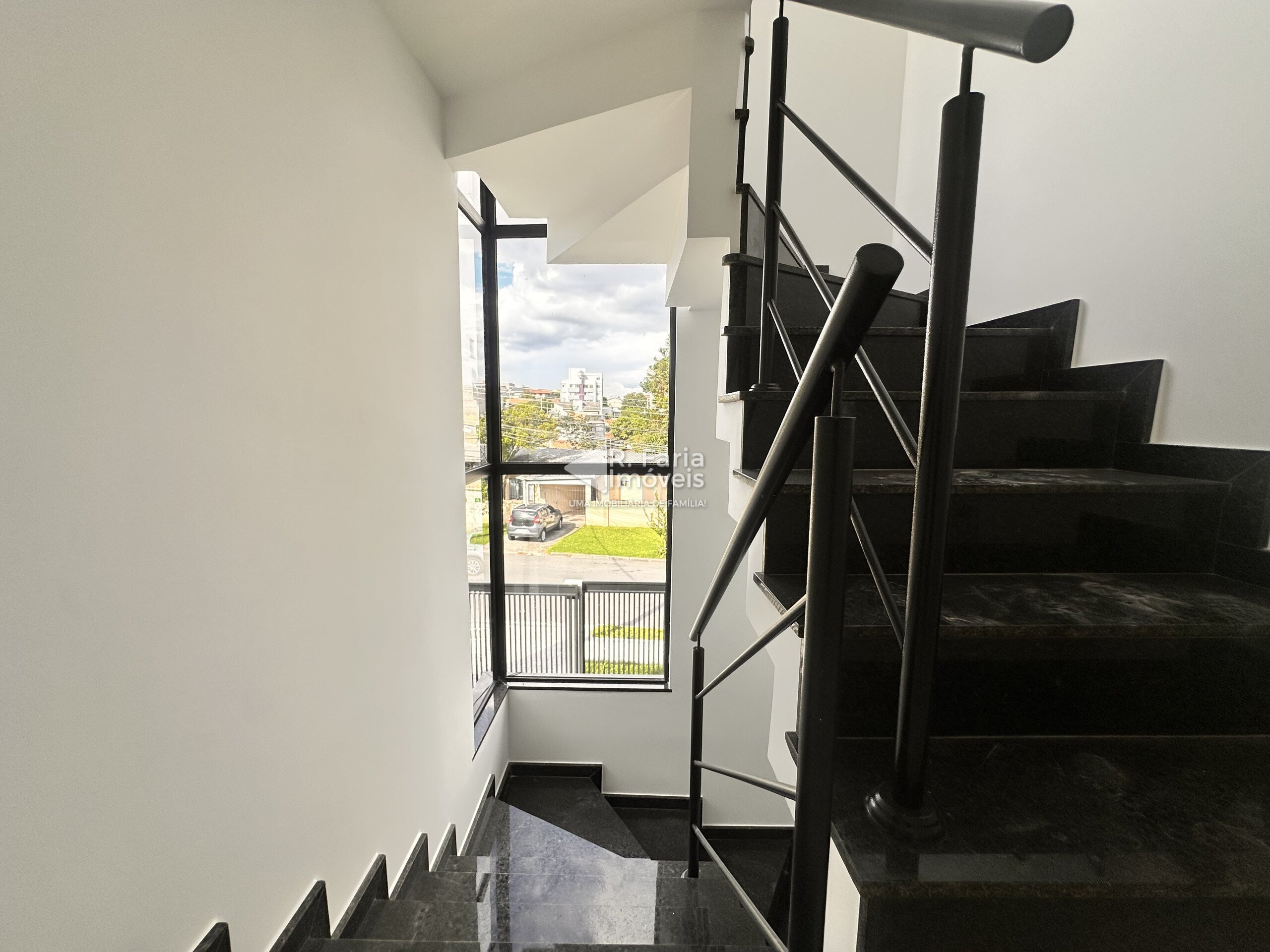 - Escadas com acabamentos em granito verde labrador;
